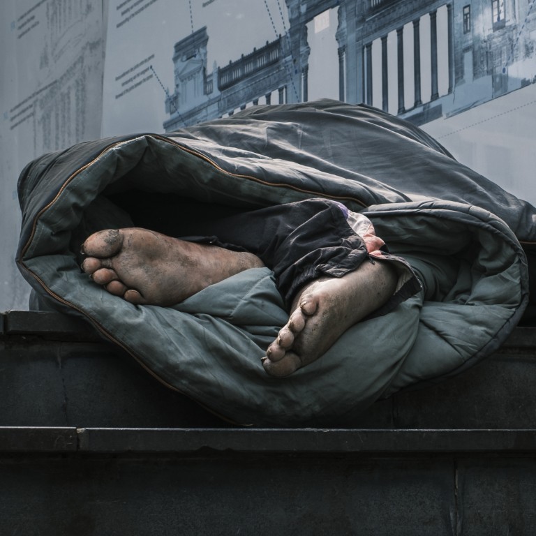 Emma: “In de zomer kwam ik een man tegen die lag te slapen op het Poelaertplein, aan de ingang van de ondergrondse parking. Ik passeerde een aantal keer, keek of hij nog ademhaalde en besloot een portret te nemen van zijn voeten die uit zijn slaapzak piepten.”
