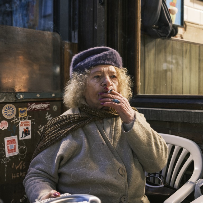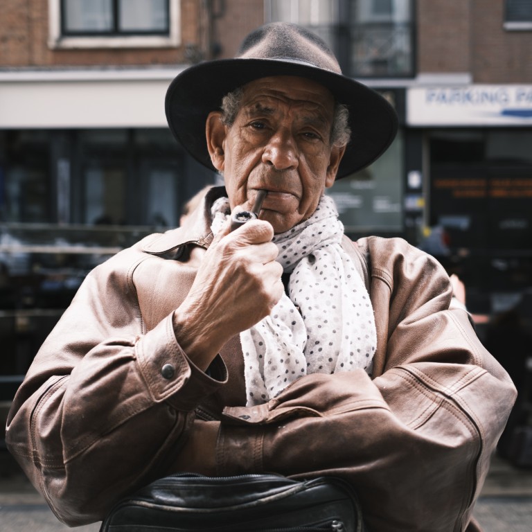 Emma: “Deze prachtige man ontmoette ik ook in Le Petit Lion. Zijn naam ontsnapt me even. Hij dronk binnen een koffie en rookte zijn pijp. Ik merkte hem op en ging ogenblikkelijk naar hem toe. Ik vroeg hem om een portret en hij stemde ermee in. We praatten niet veel, hij zette zich buiten en keek zelfverzekerd in de camera. Ik vroeg hem of hij de beelden wilde ontvangen, hij bedankte me vriendelijk.”